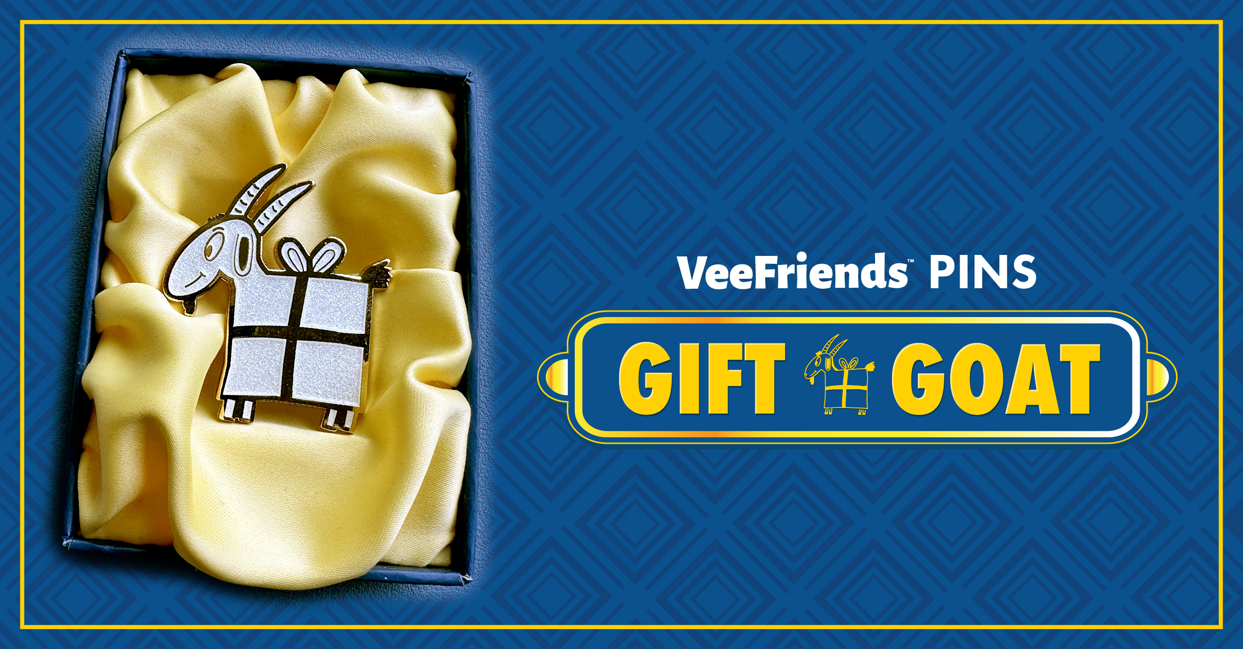 VeeFriends released its first physical collectible pin featuring Gift Goat, made exclusively for Series 1 Gift Goat holders. Limited to 555 pieces, the pin features a pearlized white finish with gold-colored accents.
