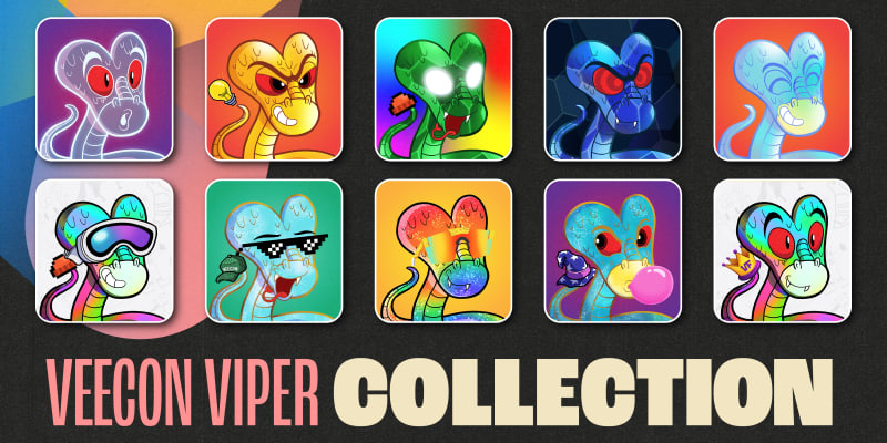 The VeeCon Viper Collection transformed VeeCon 2024 ticket NFTs into a generative art series of unique, collectible Vipers. Each Viper showcased custom traits across backgrounds, skins, eyes, mouths, and tails. The Vipers also had chase rarities such as Gold, Ghost, and Sapphire, which added to their collectibility. The collection also featured 11 exclusive 1-of-1 Vipers created by renowned artists, including Clon, King Saladeen, and Amber Vittoria. By blending digital art, rarity, and community storytelling, the Viper Collection turned event access into a lasting collectible that captured the spirit of VeeCon 2024.