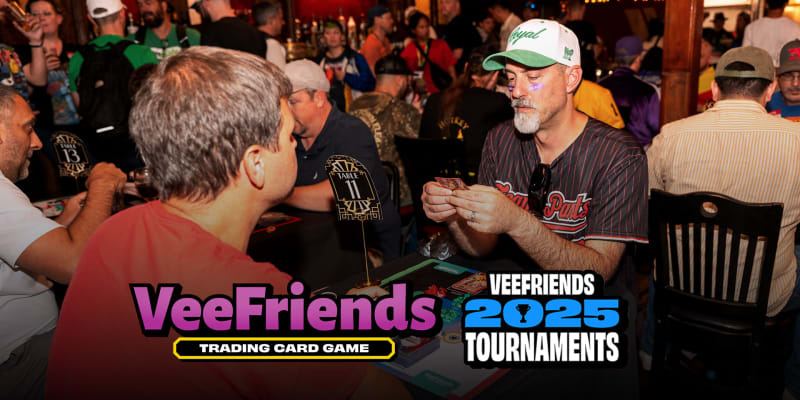 Since the launch of competitive play for the VeeFriends Trading Card Game, four major tournaments have taken place. These tournaments began with the Collector’s Cup in 2023, followed by the VeeFriends TCG Championship in 2024, and two marquee events in 2025. A third set will take place in December 2025. These tournaments offer players the chance to showcase their skills in high-energy, community-driven competition, while also supporting community-hosted sanctioned events that bring the game to even more competitors worldwide.