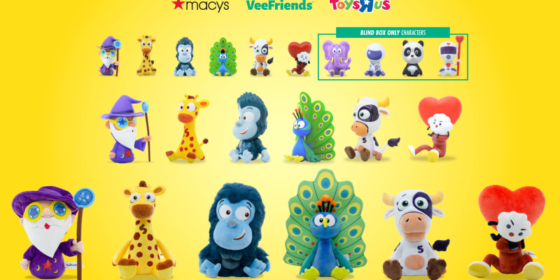 VeeFriends partnered with Macy’s and Toys “R” Us to launch an exclusive figure and plush series featuring characters like Common Sense Cow and Gratitude Gorilla. Each collectible includes a QR code that unlocks animated stories and character-driven content.