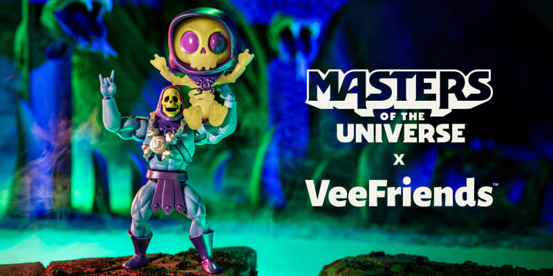 The VeeFriends x Masters of the Universe collaboration brought these two universes together in a limited-edition action figure 2-Pack featuring Skeletor and Skilled Skeleton. This 2-Pack was designed with swappable heads, hands, and accessories. The collectible also came packaged with a custom mini-comic, reimagining Skeletor’s character arc as he learns from Skilled Skeleton’s wisdom and values. This release bridged nostalgic toy culture with VeeFriends storytelling, creating a meaningful crossover for fans of both brands.