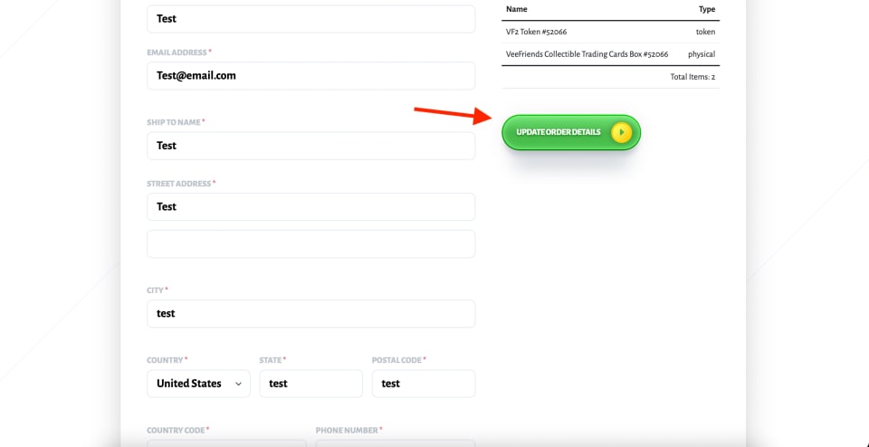 International: Due to international shipments beginning early next week, we are allowing international users a one-time chance to update their physical address if needed. All addresses need to be entered in the Latin/Roman alphabet. You have until the deadline on Monday, August 1st, 2022 @ 12 PM EDT to CHANGE/UPDATE your shipping address on the series2.veefriends.com website! Once the deadline has passed, shipping addresses cannot be updated. In order to update your address make sure you connect your wallet to the site, click on Order History, and Edit Address.