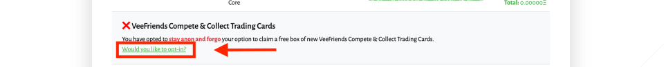 Yes! If you minted a VeeFriends Series 2 NFT and did not fill out your claim, you have until 12/31/2022 to opt-in to claim your free VeeFriends "Compete and Collect" Trading Cards on the VeeFriends website HERE. See the 3 easy steps to opting-in below: