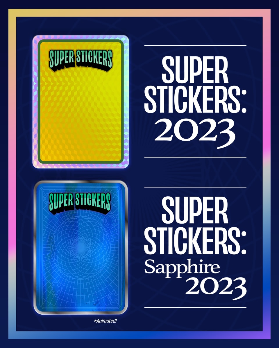 Super Stickers 2023 Scene (all Series 2 tokens): Featured a prismatic yellow background with a hologram border.
