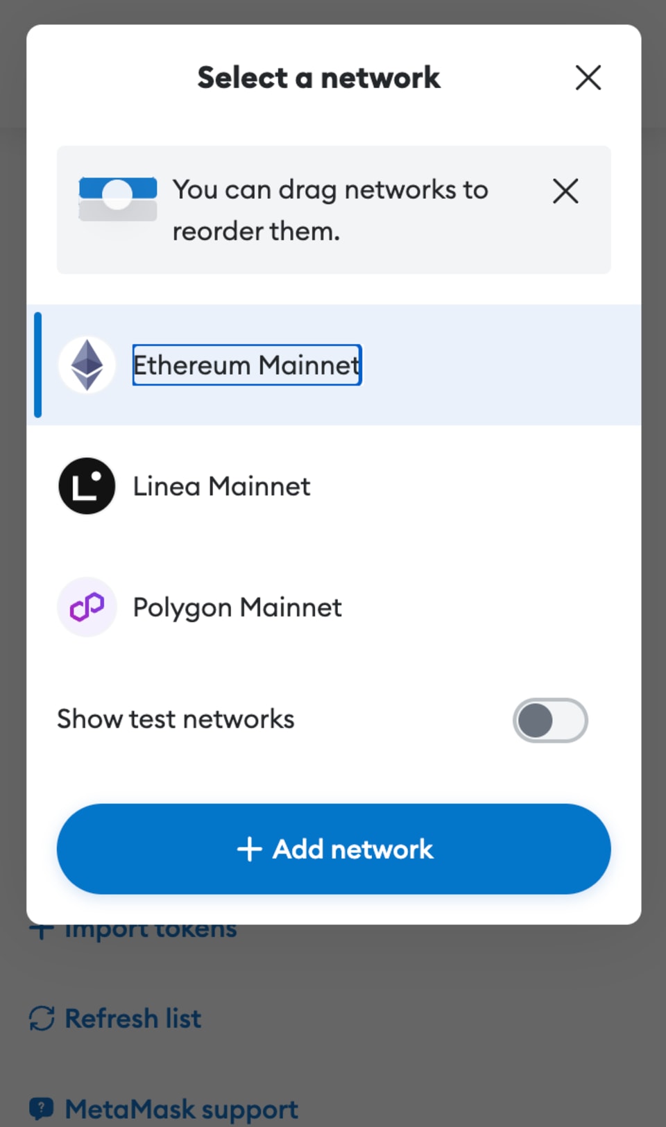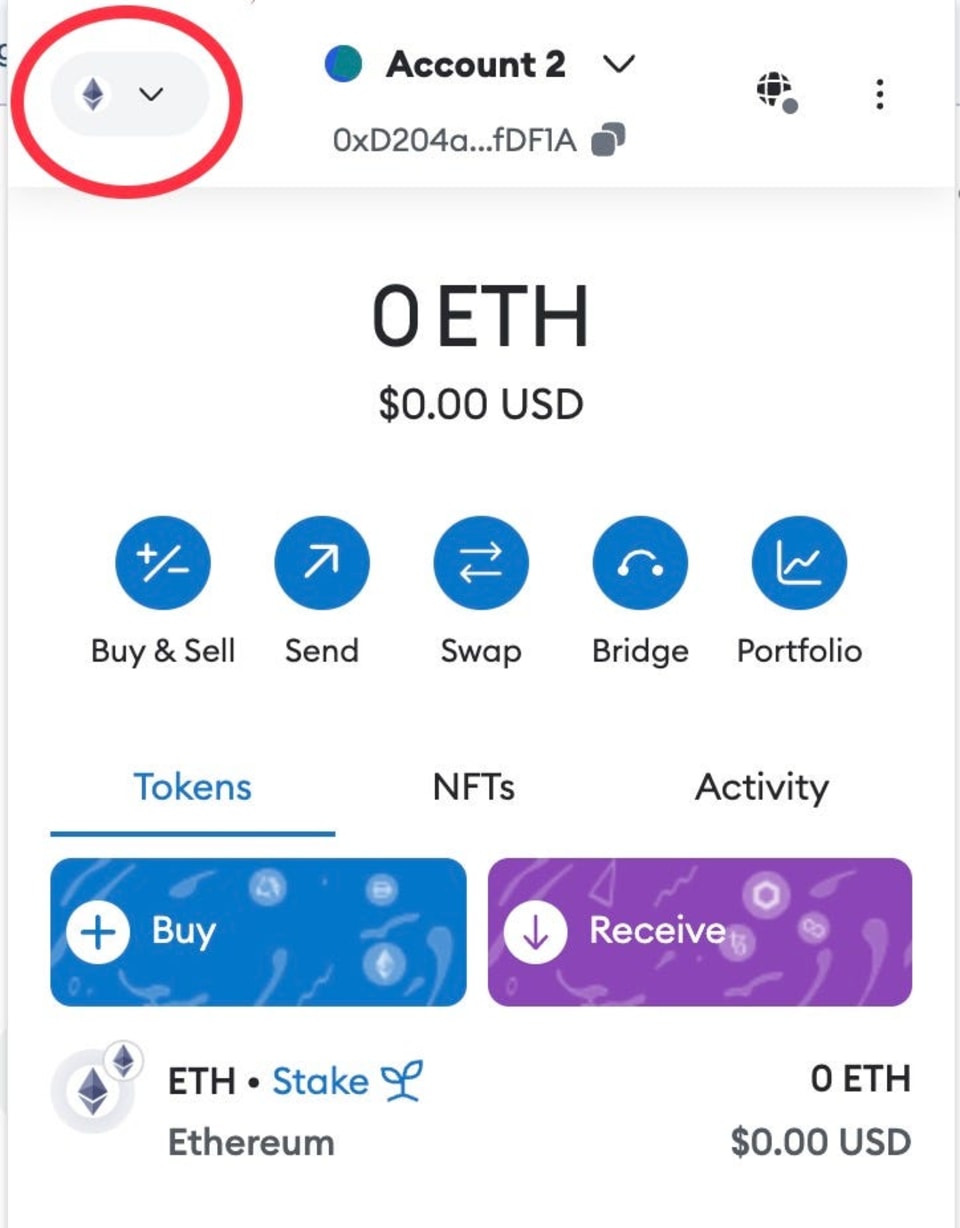 Choose the source network from which you want to bridge your tokens (for example, Ethereum).