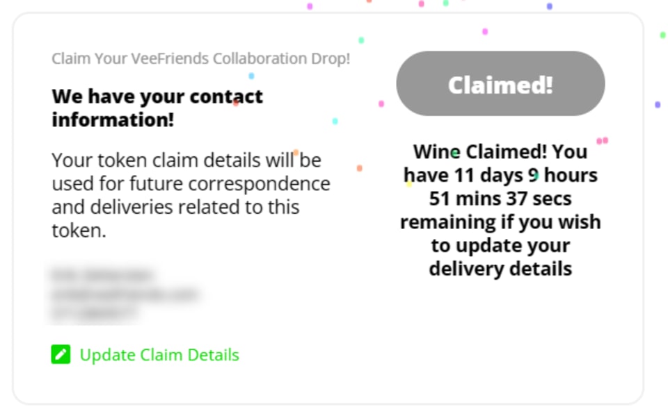If you hold an Empathy Elephant, Sensible Sommelier, or Last Glass Standing - you are eligible to claim free bottles directly at our VeeFriends website now.