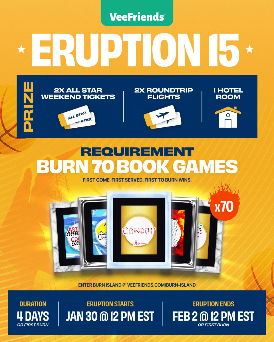 ENTER Burn Island Eruption 15: https://veefriends.com/experiences/burn-island/01-30-2024-basketball-all-star-weekend-experience (Link goes live ahead of Tuesday's Eruption)