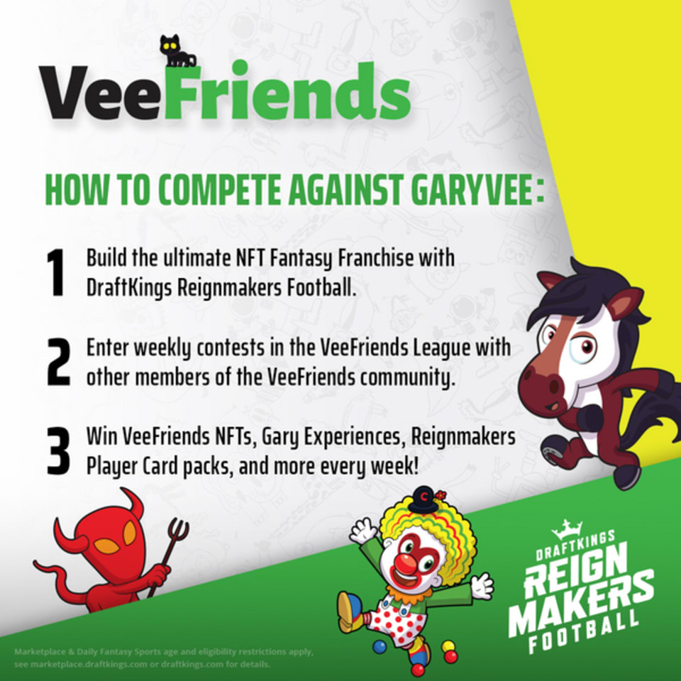 Starting Week 1 through Week 3 of the NFL Regular Season, users will be able to join a public contest in GaryVee's VeeFriends League at the CORE tier. The top 1,000 finishers each week will be eligible to play in a Week 4 Major contest to win many different prizes.