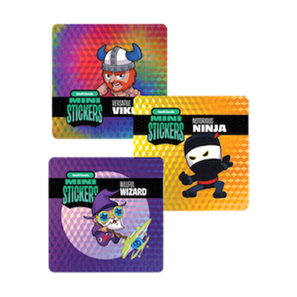 VeeFriends Mini Stickers are a collectible line that stands apart from our Super Stickers while keeping the same spirit of collectibility. They feature VeeFriends characters in vibrant, colorful, collectible sticker form. These Mini Stickers made their debut in September, 2024 as a fun collectible in Wonder Kids Meals. They later returned at New York Comic Con 2025. Now, as part of the 2026 Super Stickers: Spectacular Series drop, ten new Mini Stickers make their debut as fun bonus pulls inside packs.