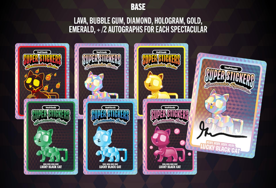 We're thrilled to unveil a first-of-its-kind collectible in VeeFriends: The Spectacular Cat. This grand insert, limited to just 55 ever made, brings together all six Spectacular types of Very, Very, Very, Very Lucky Black Cat in a single, stunning design.
