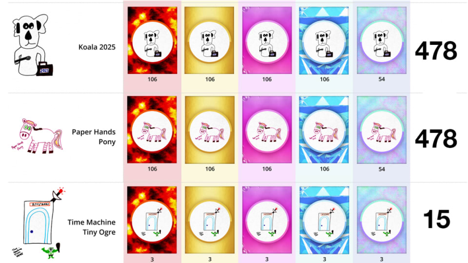 The VeeFriends count shows how many (if any) VeeFriends characters were featured in BOOK GAMES tokens, available to select and filter to view. This is simply to pay homage to the inspiration of the specific BOOK GAMES artwork.