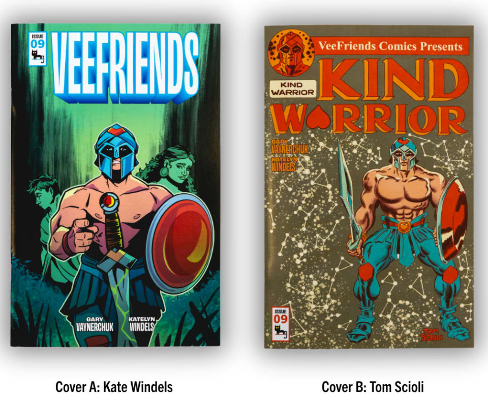 Cover B (pictured on the right) is illustrated by Eisner-nominated writer and artist Tom Scioli (author of Jack Kirby: The Epic Life of the King of Comics and I Am Stan: A Graphic Biography of the Legendary Stan Lee). Scioli brought his signature style to VeeFriends after putting his unique artistic stamp on iconic series such as Fantastic Four: Grand Design and Transformers vs G.I. Joe.