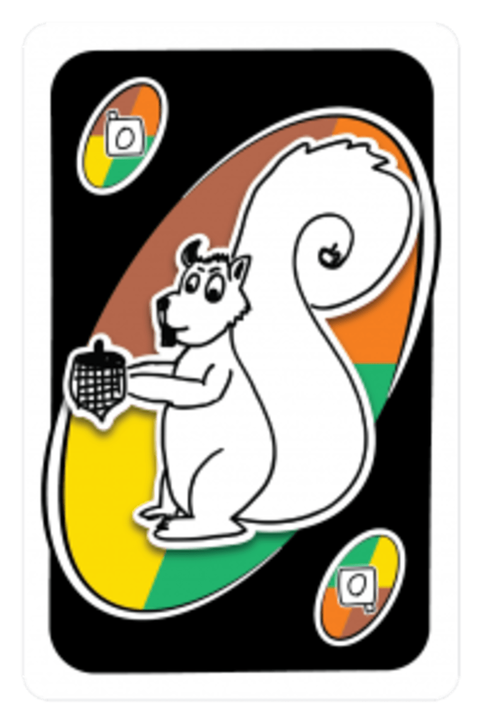 "Sharing Squirrel" - The next player must take a selfie with all the cards in your hand and have to post it on social media with the hashtag #VeeFriendsUNO (We can't wait to engage with these posts!). This is also a VeeFriends special gameplay card we created to add more fun to UNO!