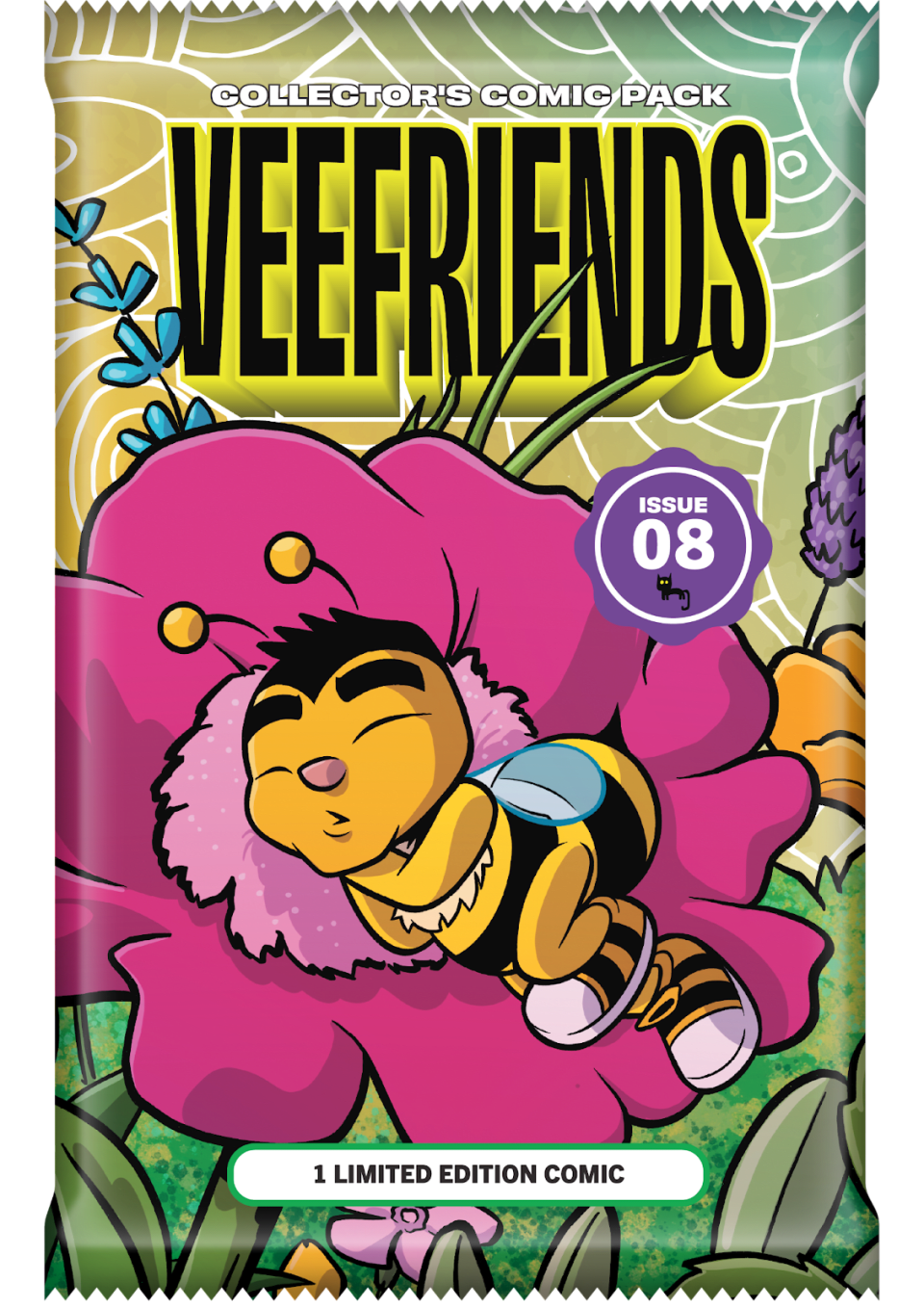 Each copy of VeeFriends Comic Book #8 comes sealed in a blind-bagged Comic Collector Pack that delivers a surprise every time you open one. Inside, collectors can uncover rare covers and limited editions, including the return of the ultimate chase: the 1-of-1 Lollipop Edition.