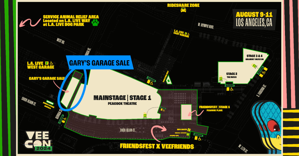 This year, Gary's Garage Sale will be situated at FriendsFest, the vibrant and central hub of VeeCon 2024. FriendsFest is not just a location; it's an experience filled with activities, entertainment, and of course, the unforgettable shopping adventure that is Gary's Garage Sale. Prepare your wish lists, and get set to explore Gary's Garage Sale at VeeCon 2024. We can't wait to see you there!
