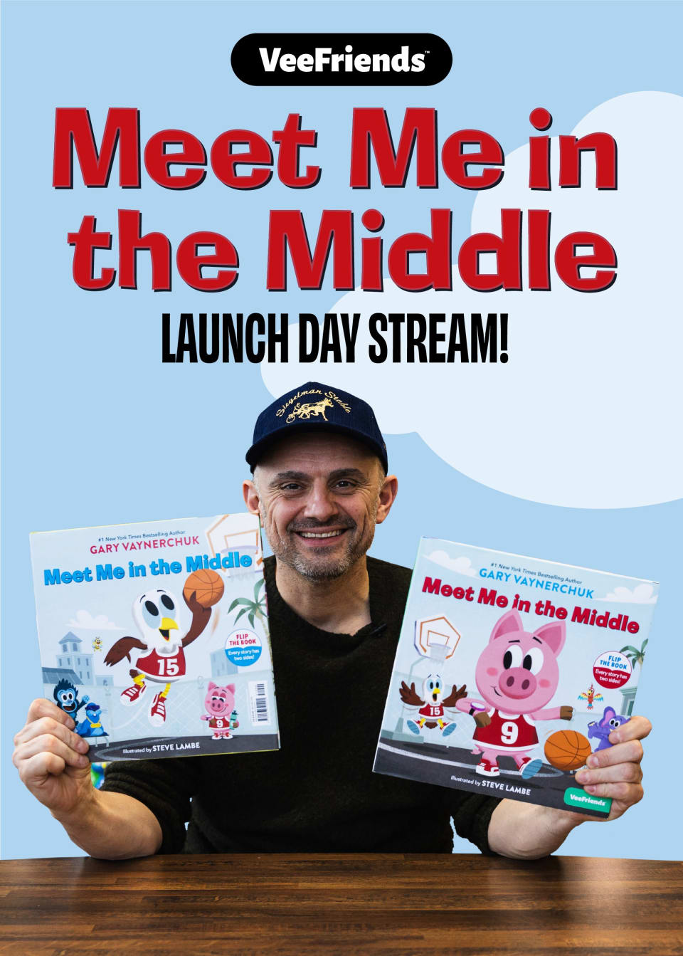 On Tuesday, July 16th starting at 10 AM ET, GaryVee and the VeeFriends team are hosting the Meet Me in the Middle All Day Live Stream on Fanatics Live! With a lineup of exciting competitions, giveaways, exclusive Pin and Super Sticker bundles, and all things Meet Me in the Middle, this is a celebration you won't want to miss. Hear insights from GaryVee as he joins us to share the inspiration behind the book and the importance of teaching balance and perspective to younger generations, follow along as the VeeFriends team ventures to the streets of NYC to find the book in the wild, and participate in exciting Meet Me in the Middle Pin & Super Sticker Bundle breaks.