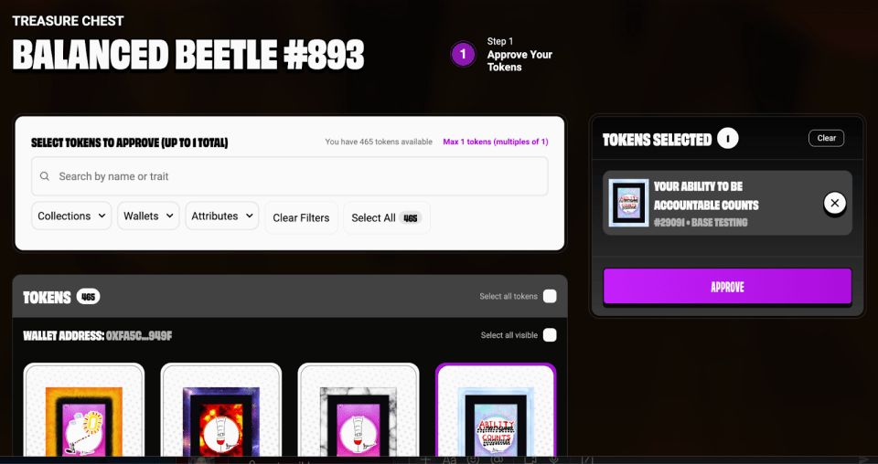 If you already have BOOK GAMES NFTs in another wallet (like MetaMask), you'll need to transfer them to your VeeFriends Wallet so you can burn them on Burn Island during Treasure Chest events. This requires a small amount of ETH on Base for network fees.