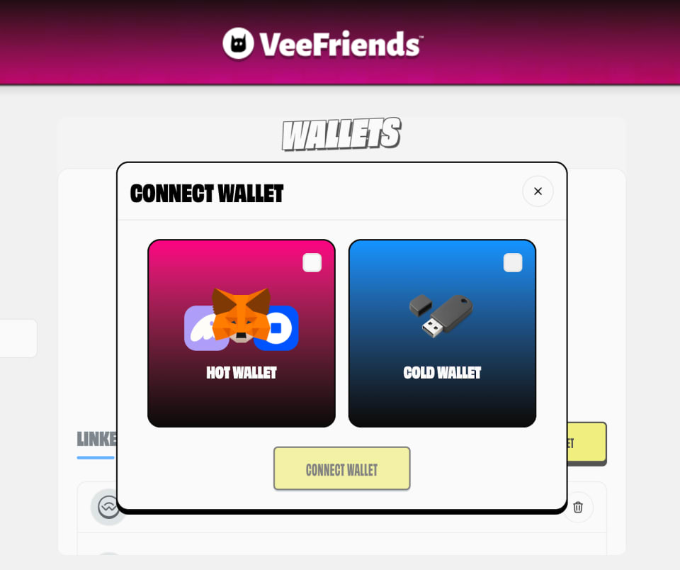 If you haven't logged into VeeFriends.com in a while, here's how to make sure your external wallet is connected:
