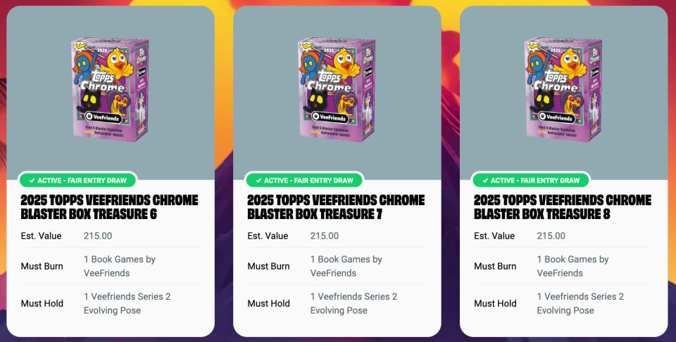 There, you'll see a lineup of various physical and digital treasures available through Fair Entry Draws.