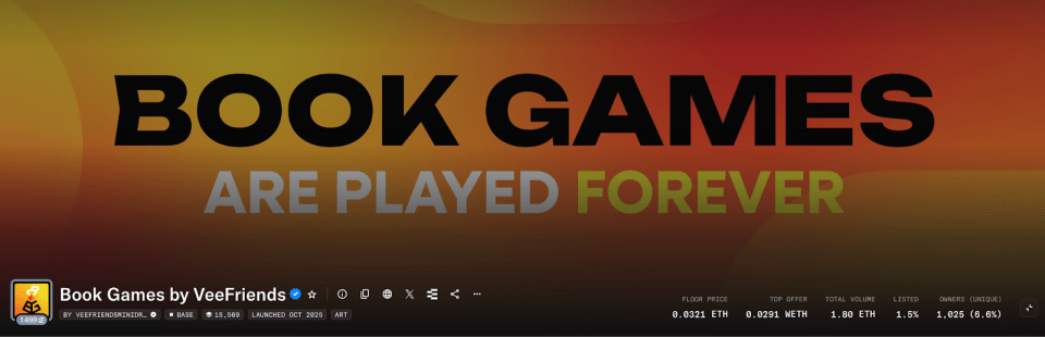 If you don't yet have BOOK GAMES, you can buy them directly through your VeeFriends Wallet on Rarible or Opensea, from the verified collection: "Book Games by VeeFriends."