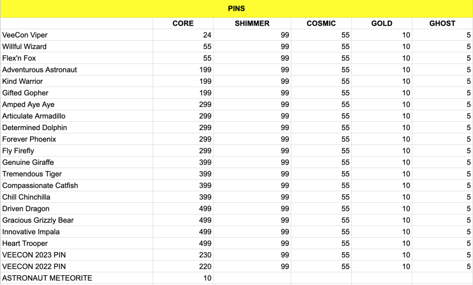 The collection will be available as sealed cases (containing 10 mini boxes) or individual mini boxes. Each Mini Box includes one random Pin and one random Super Sticker. There are 19 characters to collect, along with two special VeeCon pin designs celebrating our past conferences as we anticipate VeeCon 2024 this August!
