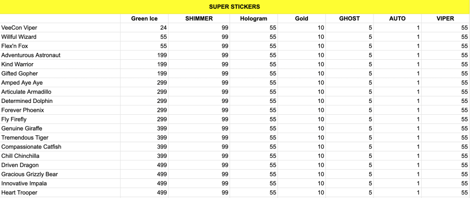 130+ Super Sticker variants