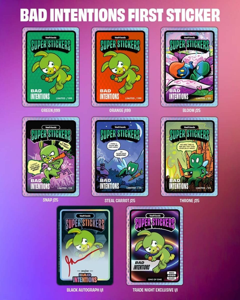 Created as a nod to the original Super Sticker giveaway at the 2023 National, which was the initial debut of this line of VeeFriends collectibles, this year we're leveling things up with the release of the 2025 National VEE-IP Exclusive Super Sticker Collection.