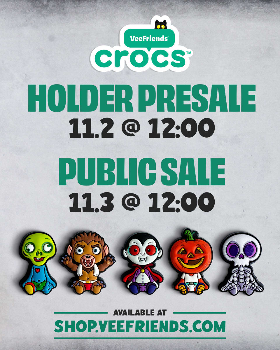 If you miss us at NYCC, all buyers can secure their VeeFriends x Crocs Jibbitz™ charms on shop.veefriends.com during public sale while supplies last. However, VeeFriends Series 1 and Series 2 holders of the 5 featured characters will be able to pick theirs up in the holder-exclusive presale.