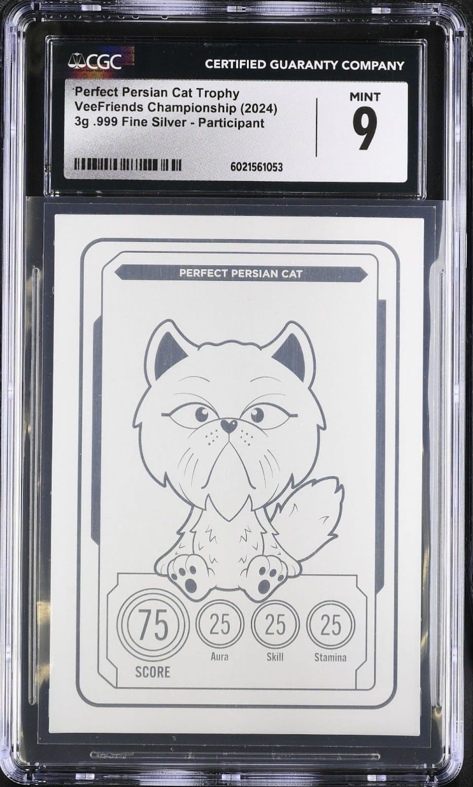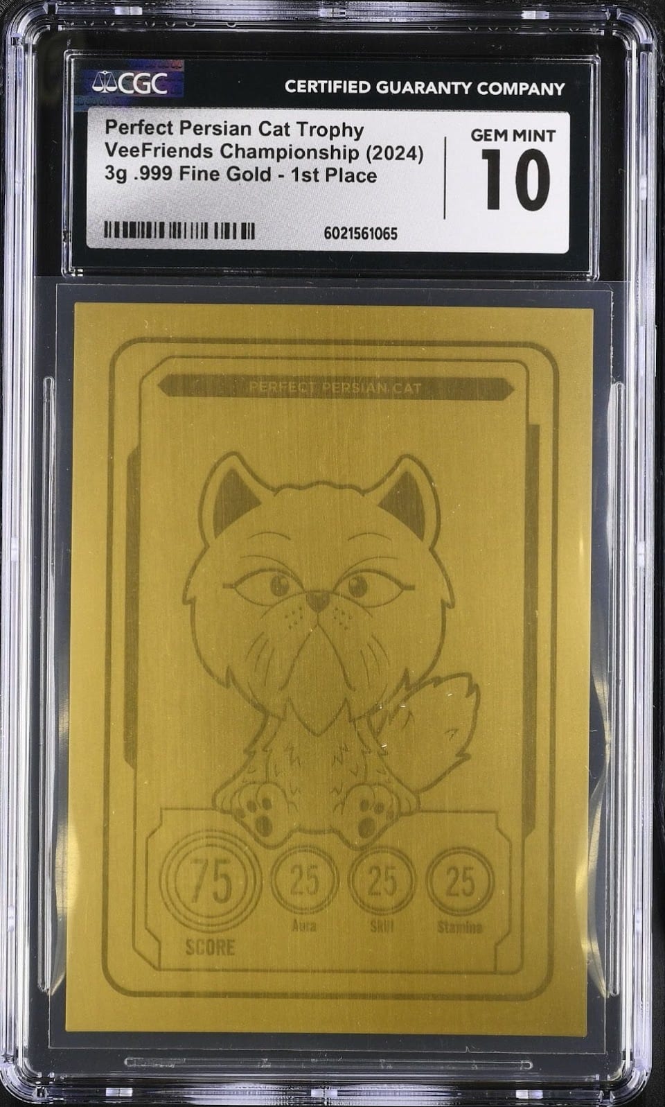 Exciting news for all VeeFriends TCG competitors — the Perfect Persian Cat Trophy Cards from the 2024 VeeFriends Trading Card Game Championship are officially on their way! Whether you're one of the 64 participants eager to commemorate your journey, or the champion ready to claim your exclusive gold card, the wait is almost over. Get ready to add these stunning collectibles to your collection!
