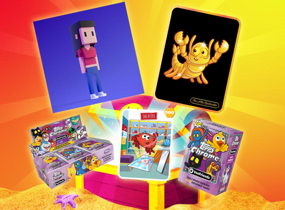 This Week at VeeFriends: The first Eruption on Base offers up a Topps VeeFriends Chrome 2025 Sapphire Box, the first digital Treasure Chest on Base ends, the physical Treasure Chest collectible set was announced with 4 high-end collectibles, and more!