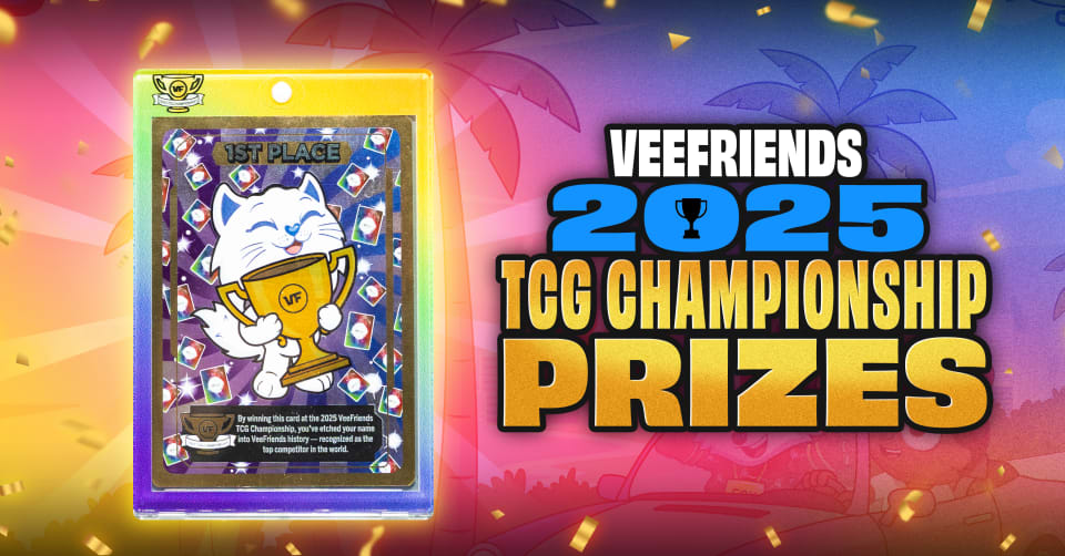VeeFriends announced the prizes for the 2025 VeeFriends TCG Championship, which will take place on Sunday, December 14th in Los Angeles (the event is open to the public and will be livestreamed on Twitch). The 2025 VeeFriends TCG Champion will take home the official Championship Trophy. The 1st - 4th place finishers will each receive an exclusive Trophy Card in a custom stand-up display mag case. Every competitor in the championship will also receive four commemorative collectibles. These include an Event Card, a VeeFriends Breakmat, as well as a Perfect Persian Cat collectible coin and sticker.