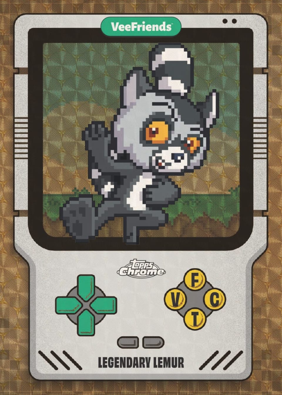 The Game On insert in Topps VeeFriends Chrome 2025 pays tribute to retro handheld gaming with 10 VeeFriends characters reimagined in a pixelated, 8-bit style. Each shadowbox card features a dynamic digital scene inspired by vintage consoles, adding depth and nostalgia to the chase. With ultra-rare parallels like Blue /99, Purple /50, Green /25, Yellow /10, Teal /5, and a Superfractor 1/1, Topps VeeFriends Chrome collectors won't want to miss this throwback-themed grail.