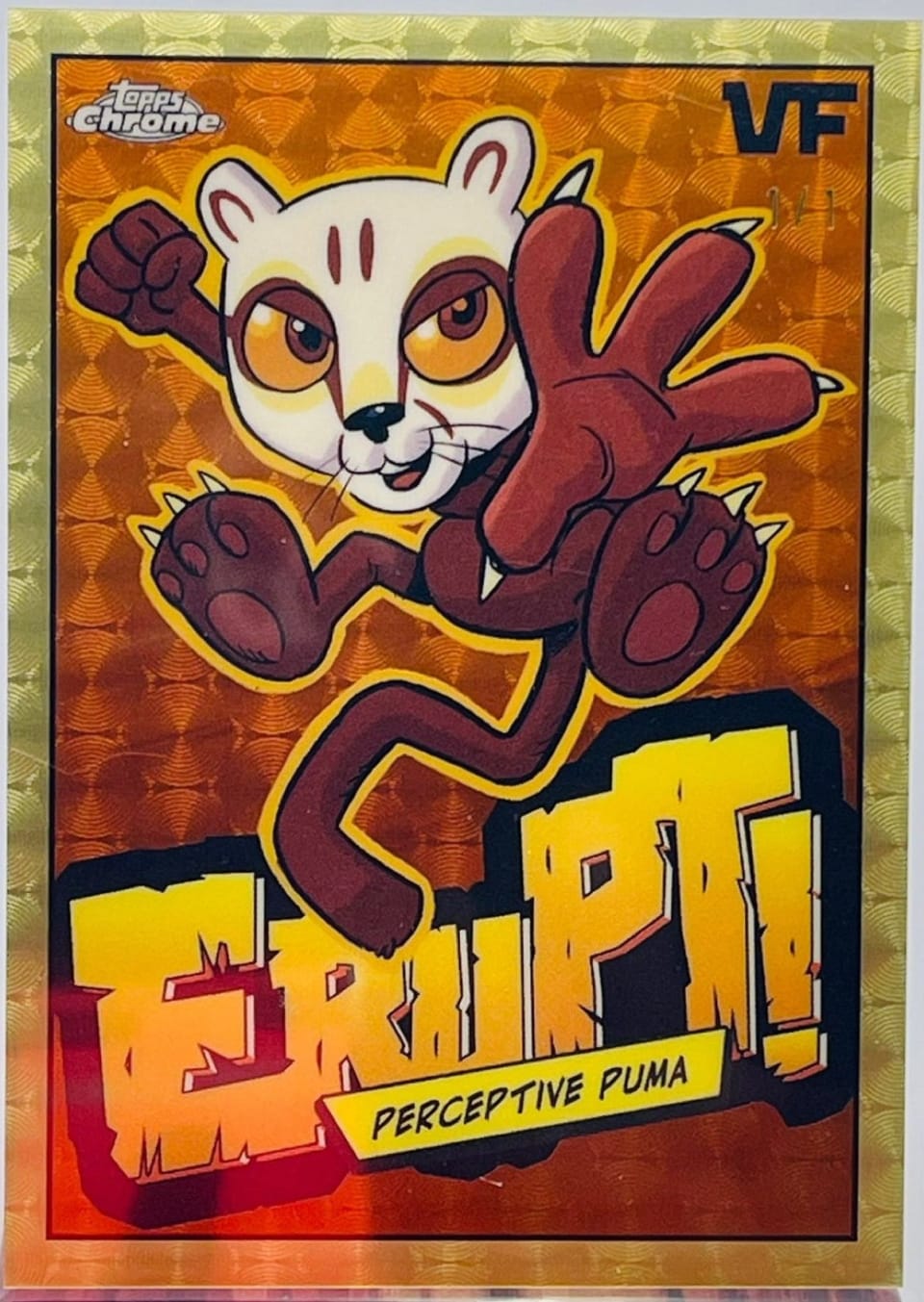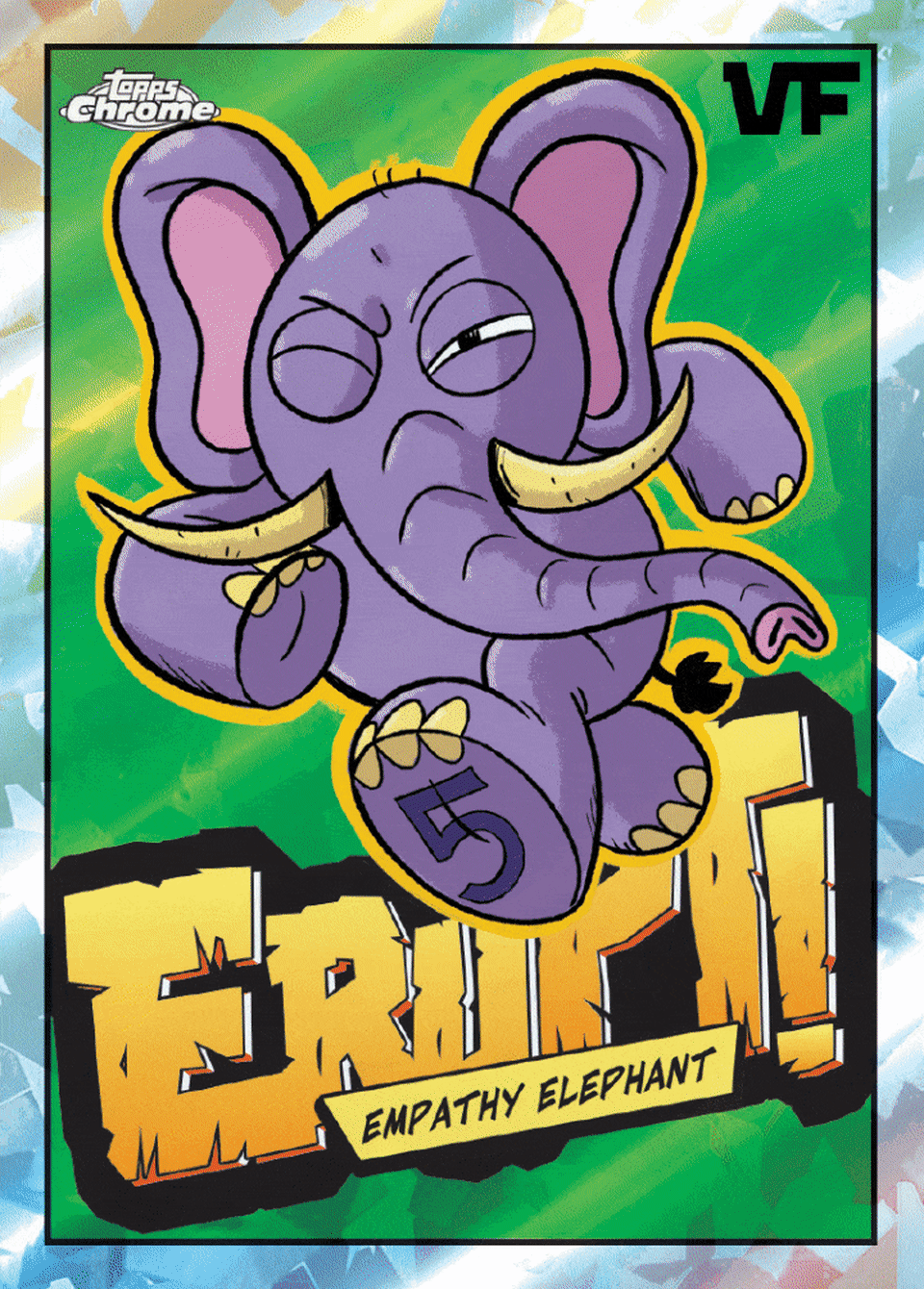 Found in 1 in 3,000 packs, the ultra-rare subset ERUPT! features 10 VeeFriends characters illustrated by Gyula Németh, the artist behind Panini's legendary Kaboom! Insert, the most significant modern-day trading card set. Known for his dynamic, comic-book-inspired style, Németh brings explosive energy and intricate detail to every card.