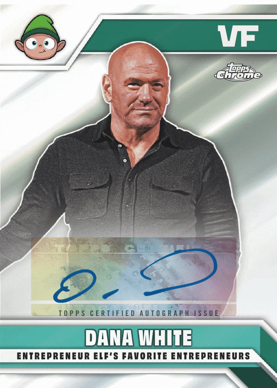 The Entrepreneur Elf Insert showcases some of the most prominent and influential entrepreneurs shaping the business world today. Only Entrepreneur Elf appears on these cards, alongside the featured human entrepreneur. These come in both autograph and non-autograph versions.