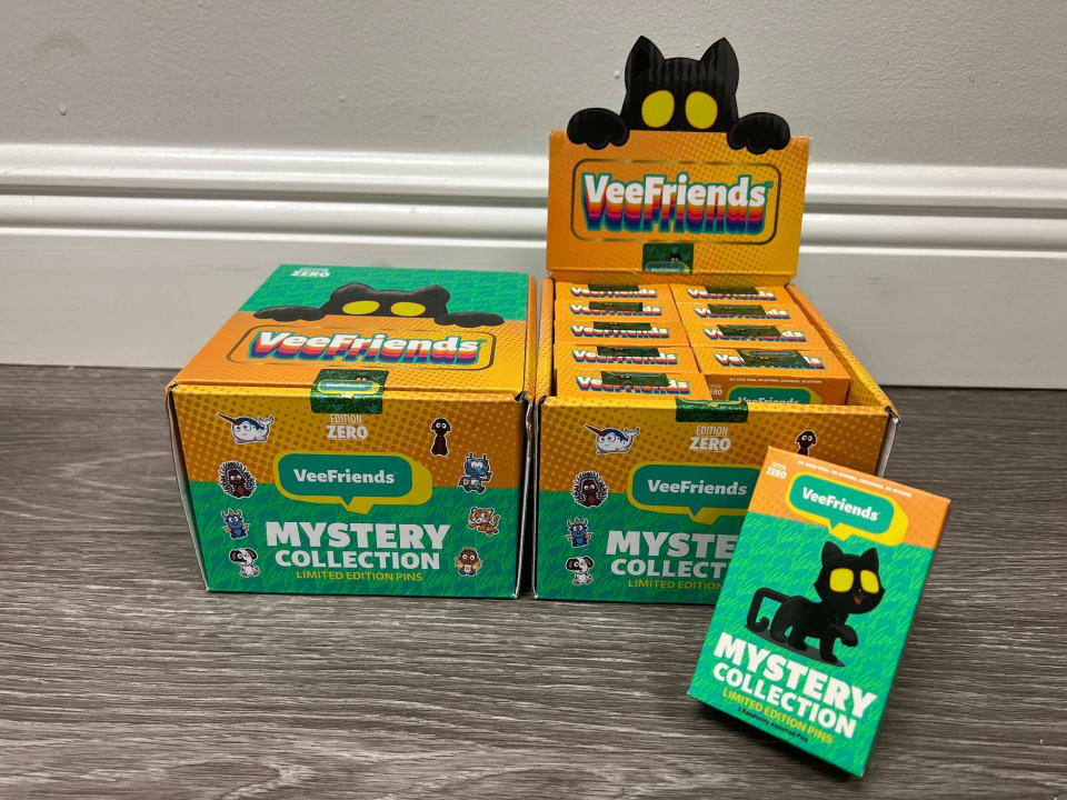Experience the latest addition to the VeeFriends physical family uniquely and stylishly - the "Edition Zero" mystery pin collection! Two randomly inserted characters out of the 12 available will be included in every pack, making a thrilling surprise for any collector! Will you be able to find them all?