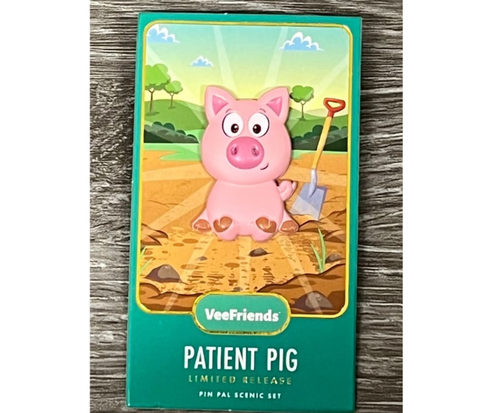 This special "Scenic Pin Pal" stars a 3-D sculpted metal Patient Pig in its natural habitat - The Dirt! This Pin with a matching background scene card is bound to be a fan favorite!