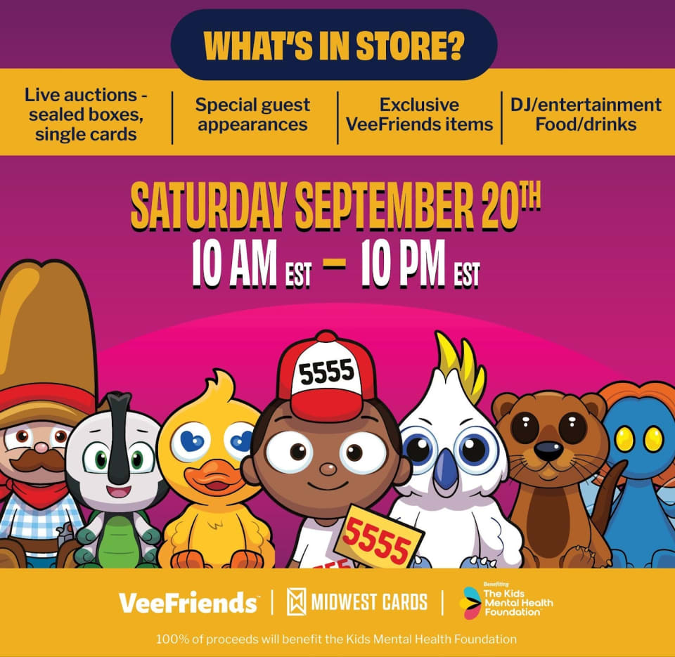 VeeFriends is teaming up with Midwest Cards and the Kids Mental Health Foundation for a special 24-hour charity livestream. All proceeds will support the Kids Mental Health Foundation's efforts to promote children's wellness.