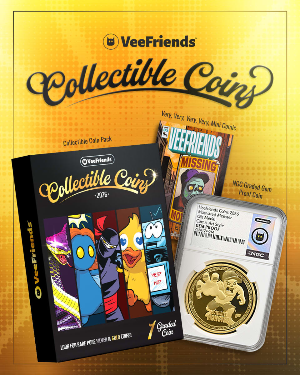 The 2026 VeeFriends Collectible Coins is a new way to experience VeeFriends through character, mystery, and collectible design. With 55 characters to chase, three art styles, three plated metal rarities, NGC graded presentation, and the chance to uncover pure silver and pure gold, this release turns every pack into a memorable reveal. It blends storytelling and surprise with a polished collectible format, giving fans something that feels fun to open, exciting to chase, and worthy of display.