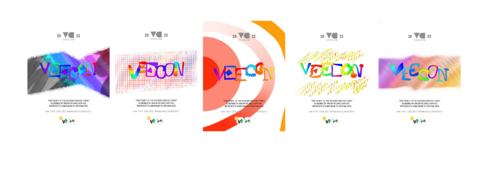 The ticket variables are full of innumerable opportunities of combination, a perfect metaphor for the boundless opportunities for connection, education, and innovation that VeeCon will bring.