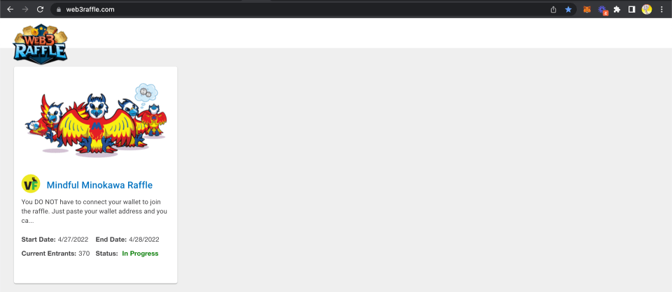 After the raffle period has ended for the new character that you registered for, go back to the specific character [Web3Raffle](https://web3raffle.com) site (each character will have their own raffle entry on Web3Raffle). Once on the Web3Raffle character site, you can see if your wallet won or not by searching your wallet address.