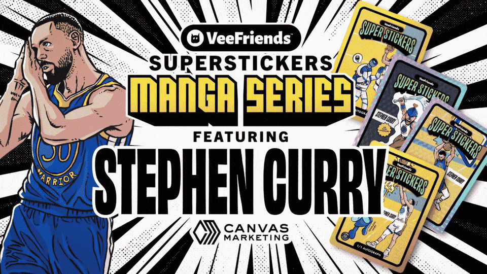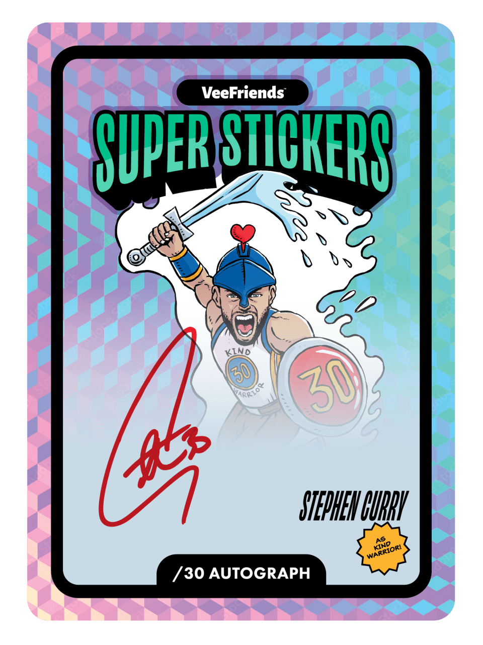 Stephen Curry takes the spotlight in Super Stickers: Manga Series through three exclusive insert formats that celebrate his style, mindset, and alignment with VeeFriends values. Curry Crossovers pit him against 20 VeeFriends characters in high-energy, manga-inspired matchups. Stephen Curry as Kind Warrior reimagines him as one of the brand's most symbolic characters, which also happens to match his team's name. And finally, the ultra-rare Dual Autograph insert pairs Curry and GaryVee on a single Super Sticker, with just 11 total copies.
