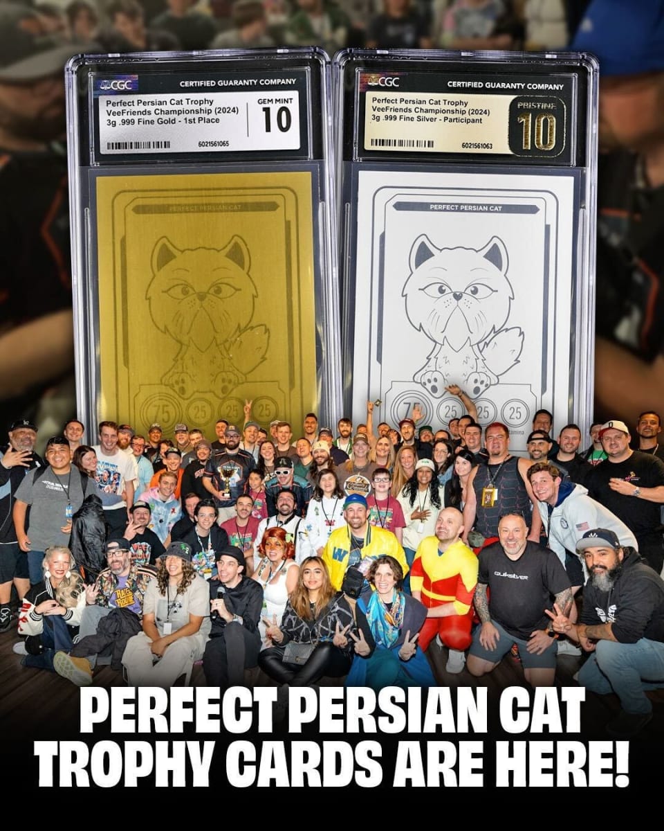 The commemorative VeeFriends TCG championship Perfect Persian Cat Trophy Cards have officially shipped! Whether silver or gold, these exclusive trophy cards are a testament to competition, skill, and the growing VeeFriends TCG community.