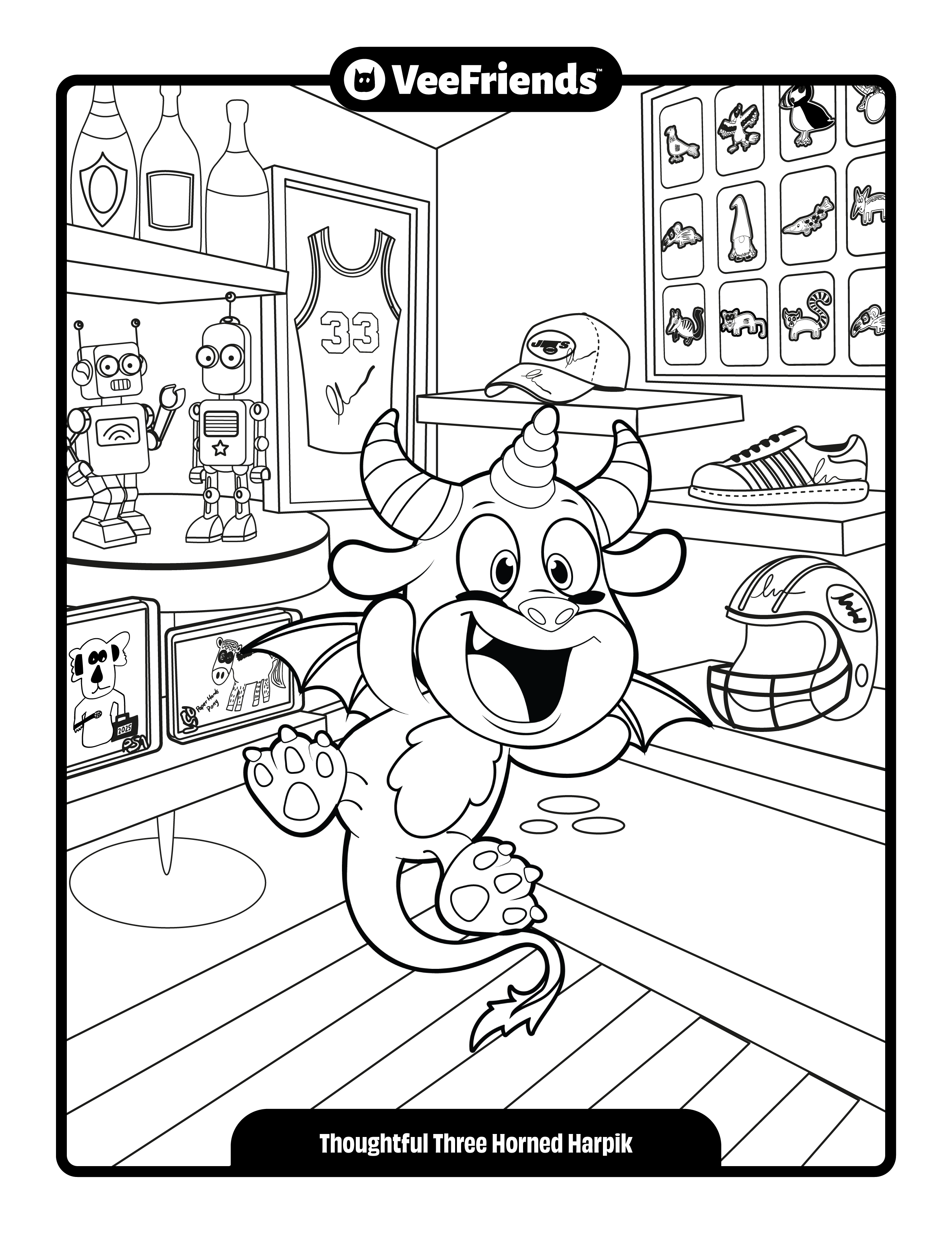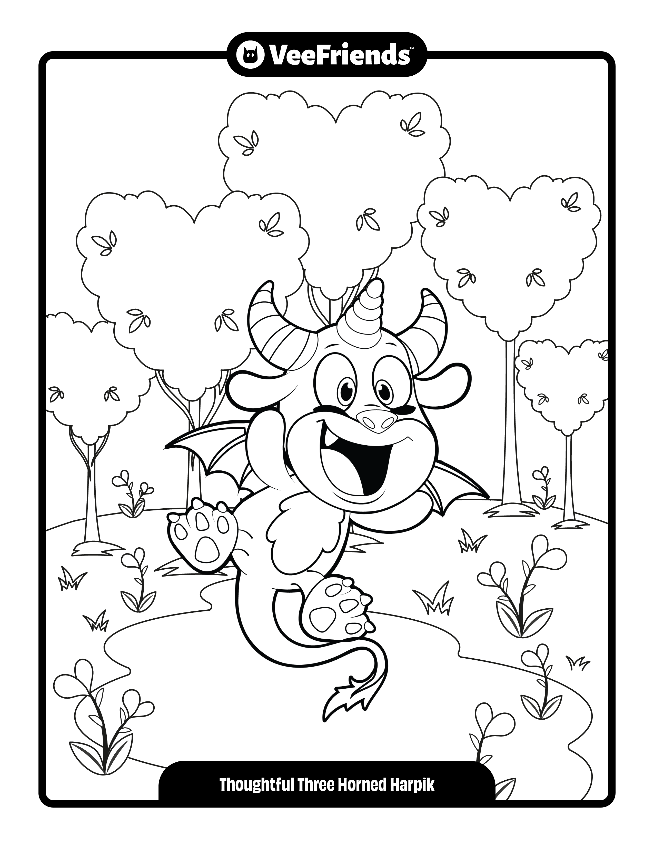 Bring Thoughtful Three Horned Harpik to Life - Download & Color Their Adventures from VeeFriends!